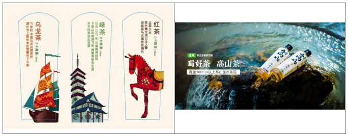 东方树叶凭借一句“传统的中国茶,神奇的东方树叶”经典广告语绑定传统文化与品牌,借助年轻化营销与兼具文化属性与审美调性的包装创意成功打入年轻消费群体,成为无糖茶饮料长青国货。后浪黑马元气森林则以燃茶入局,把大大的汉字以毛笔字体直接印在瓶身。让茶集团推出“高山”无糖茶饮料,以传统中国风视觉元素呈现茶文化。