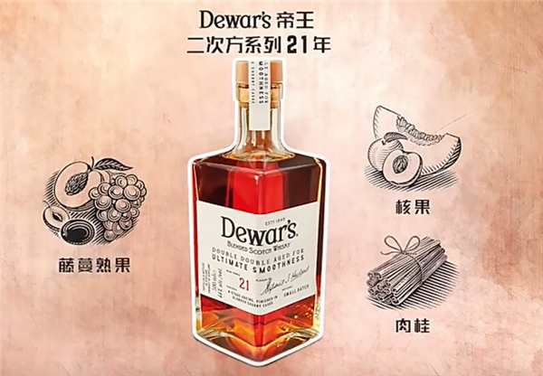 了解威士忌是什么酒后,我们便来推荐值得入手的调和威士忌。在调和威士忌的市场中,Dewar's帝王一直以独有的“二次陈酿”工艺闻名遐迩,他们将调和之后的威士忌放入精选陈年橡木桶中二次发酵,历经一百八十天左右的桶陈,使威士忌呈现出非常美妙的丰富口感[2]。而Dewar's帝王的第七代官方调和大师斯蒂芬妮·麦克劳德(Stephanie Macleod)在“二次陈酿”的基础上再为精进,以“四次陈酿”工艺打造出Dewar's帝王二次方系列,突破醇顺口感的上限,让威士忌酒液的醇顺风味,更进一步。
