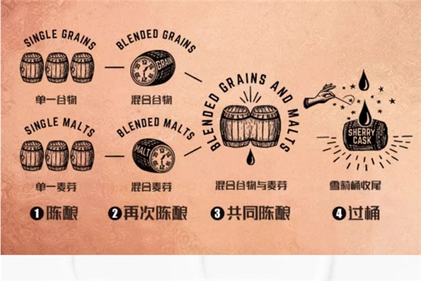 如果你是一名新手,想了解威士忌是什么酒,建议从调和威士忌开始品鉴。因为调和威士忌的出现,便是为了弥补单一麦芽/谷物威士忌的产量及质量不易掌控,且口味比较重之类的问题。同时,调和威士忌在价格上价格也没有那么贵,日常品鉴时你无需纠结多少钱一瓶合适。不过调和威士忌也有顶级奢侈品酒款,十分适合收藏之用。