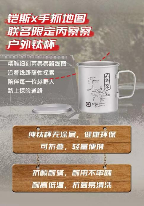 KEITH铠斯与手抓地图共同推出丙察察地图联名钛杯。走最烂的路、看最美的风景。以第七条著名进藏线路—丙察察线路图作为篆刻图案。