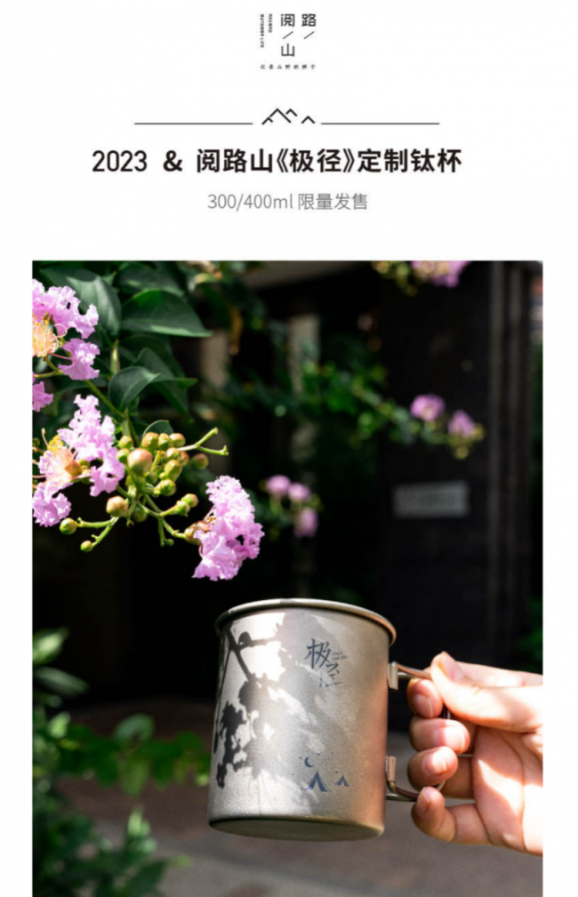 KEITH铠斯与武汉著名硬核徒步机构阅路山联合,推出纪录片《极径》定制钛杯,武汉阅路山是国内优质的户外徒步纪录片工作室,《极径》是由武汉阅路山出品,汇集了国内资深徒步者以及户外影像的玩家,影片跟随队员的徒步行走轨迹,记录藏区极致的风光与人文;KEITH铠斯与武汉阅路山的合作,从影片的角度进入探险世界,KEITH铠斯与阅路山联合定制的纪念款钛杯,将会和阅路山的会员们一起去探险。武汉阅路山深耕于户外徒步运动,和众多户外品牌有深度合作,现拥有16个社群,近8000人粉丝。KEITH铠斯,也是8月18日武汉恒隆广场全球首家线下旗舰店开业,将为阅路山的会员提供专属会员福利和体验。