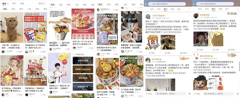 除新品以外,活动还推出美团外卖与肯德基联合定制的“8周年纪念桶周边”。周边以高颜值、高实用性强势出圈,用高颜值和意外的“反差萌”,撬动各圈层;而其本身自带的“欧气”玩法,符合近几年颇受年轻人热爱的“抽卡”、“玄学”、“盲盒”理念,切中年轻人兴趣点。同时,美团外卖联合小红书、微博平台上不同领域博主,以周边为核心物料,辐射颜值、生活、郊游、萌宠、手工、手作等多个圈层,成功打造多个爆款笔记,引发粉丝打卡热潮,成功吸引一波网友自来水传播以及对周边“全网求桶”的追捧。