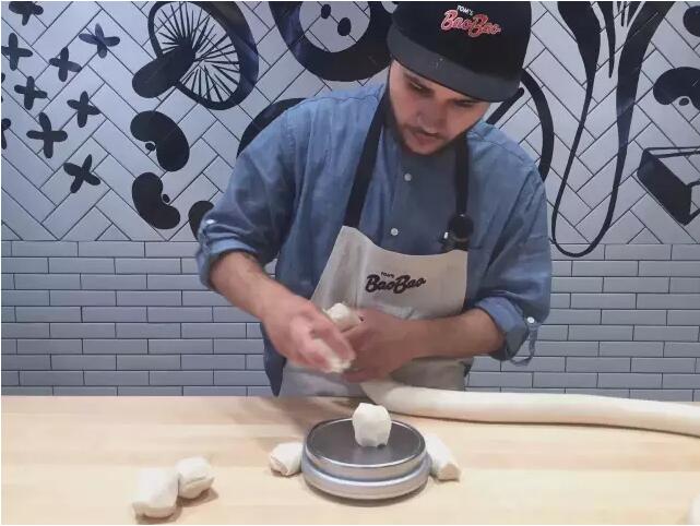据了解,美国店的大厨全都是美国人哦。注意到包包师傅前面这个秤了吗?和国内一样,Tom's BaoBao标准严格,生包子的重量是100克,这其中60克面皮、40克馅料,误差范围不能超过2克。每个包子有规定的褶皱。
