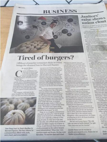 经过近两年的筹备,甘其食海外首家分店——Tom's BaoBao昨天起正式迎客了。作为中国包子国际化的先行者,这一次,甘其食堂而皇之地把店开在了世界著名学府哈佛大学的大门口。