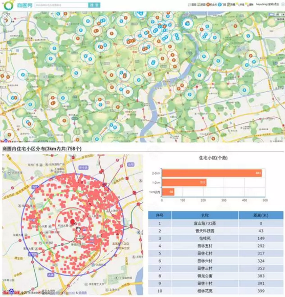 如下图所示:直接在商圈秀智能平台上输入地址,便可得知竞争店铺分布数量、消费者特征等有助选址的关键信息。