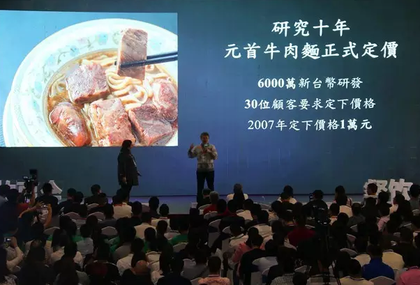 世界第一的牛肉面叫“元首”牛肉面,售价1万台币(约人民币2000元),价格不是牛爸爸自己定的。菜单中“元首牛肉面”的价格是空白的,客人尝了之后告诉牛爸爸这碗面值多少钱,有人说500,有人说6000,有人说8000,有人说1万2…..经营一段时间之后,有超过30位客人告诉牛爸爸这碗面的定价在1万元(台币),这碗面的价格才最终定下来,这么多年下来,卖的都是回头客。