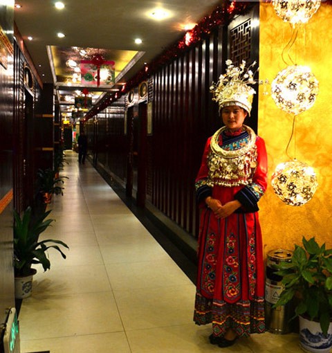 新乌龙山寨主打湘西特色,所以我们招的服务员全是土生土长的湘西人。其它酒店的服务员多数是年轻漂亮的小姑娘,我们酒店的服务员有一半都是大妈,她们身穿湘西的民族服装,看起来非常有民族风情。与普通服务员相比,湘西服务员的优点很多: