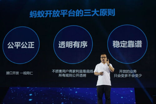 蚂蚁金服支付事业群总裁樊治铭表示,与其它开放平台不同,蚂蚁金服开放平台不仅是技术的开放,也是市场和商家的开放。“蚂蚁金服将会把十多年沉淀下来的商家和市场,全部开放出去。”
